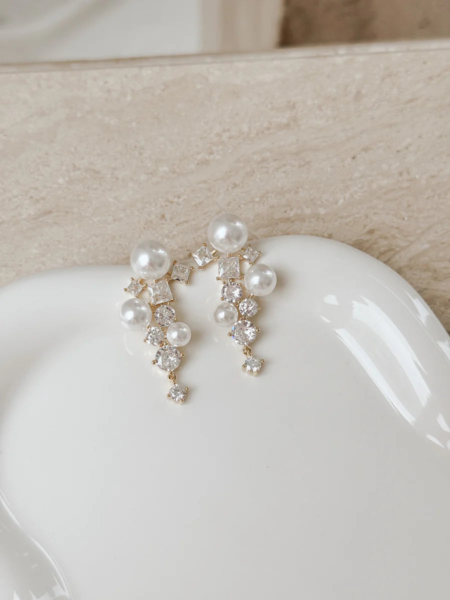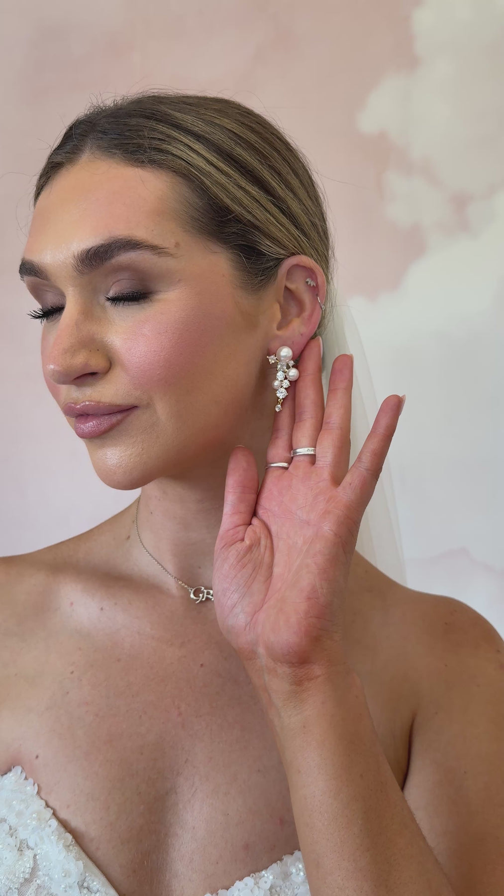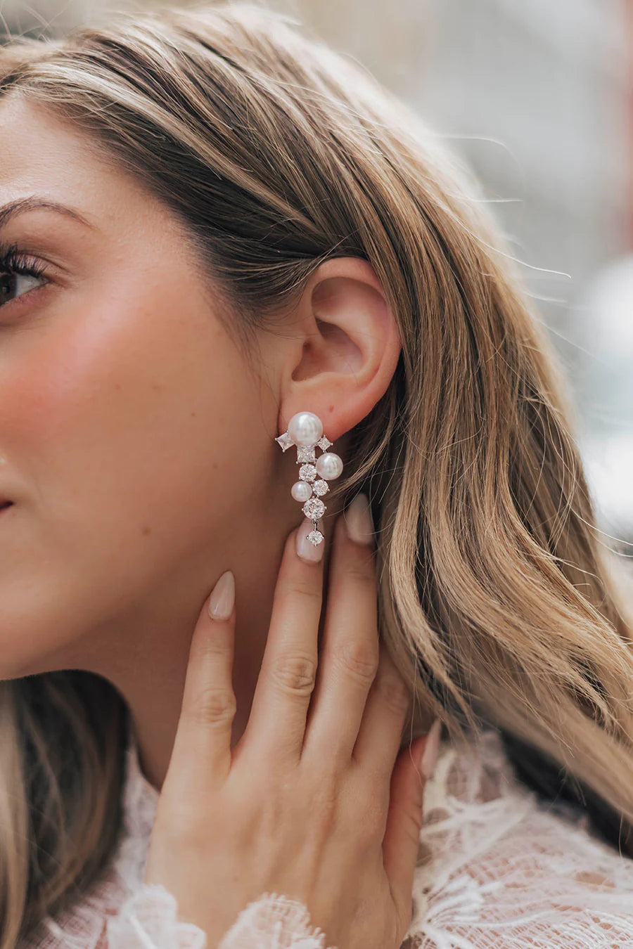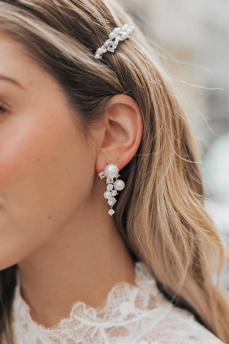Our beautiful Mai earrings are a truly stunning bridal design. They are embellished with clear cut cubic zirconia crystals on a sparkly silver finish.