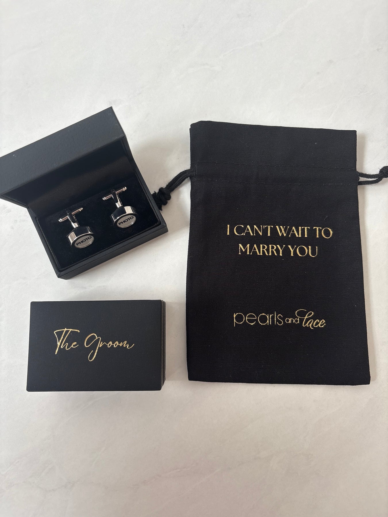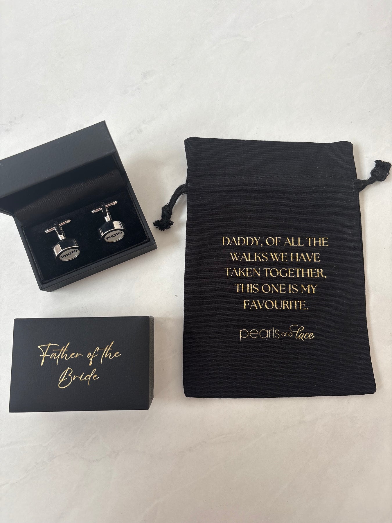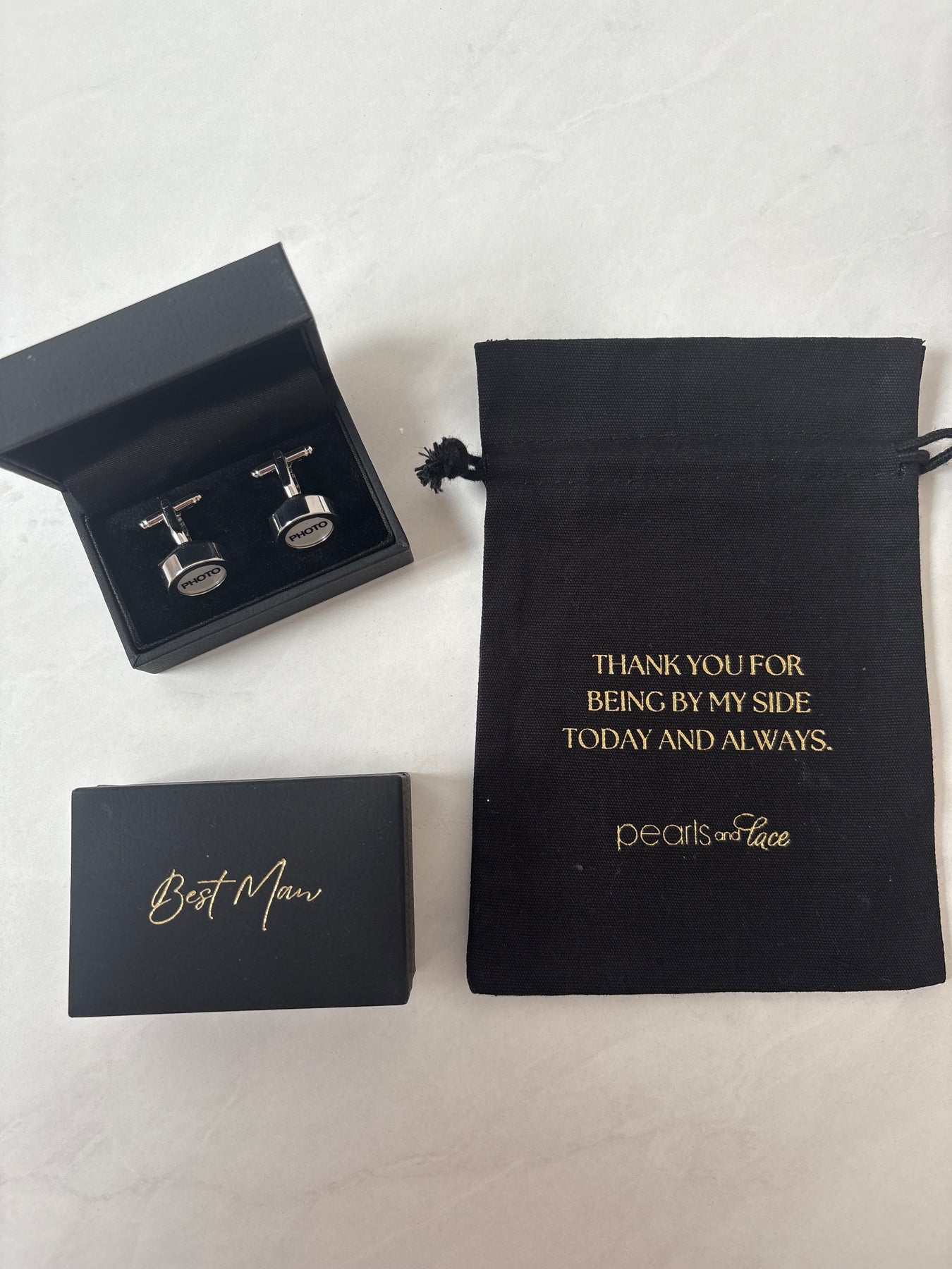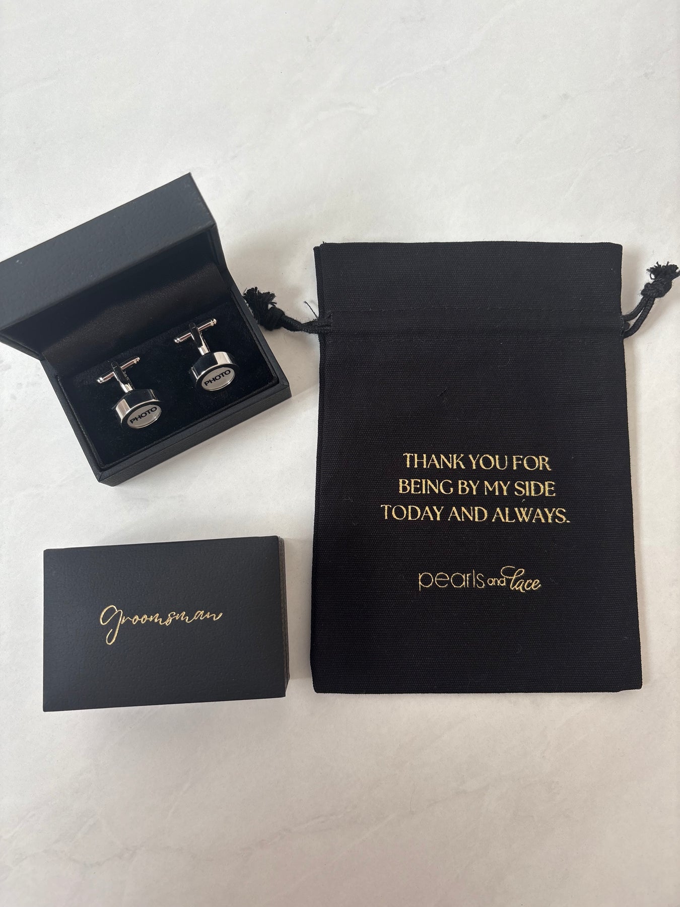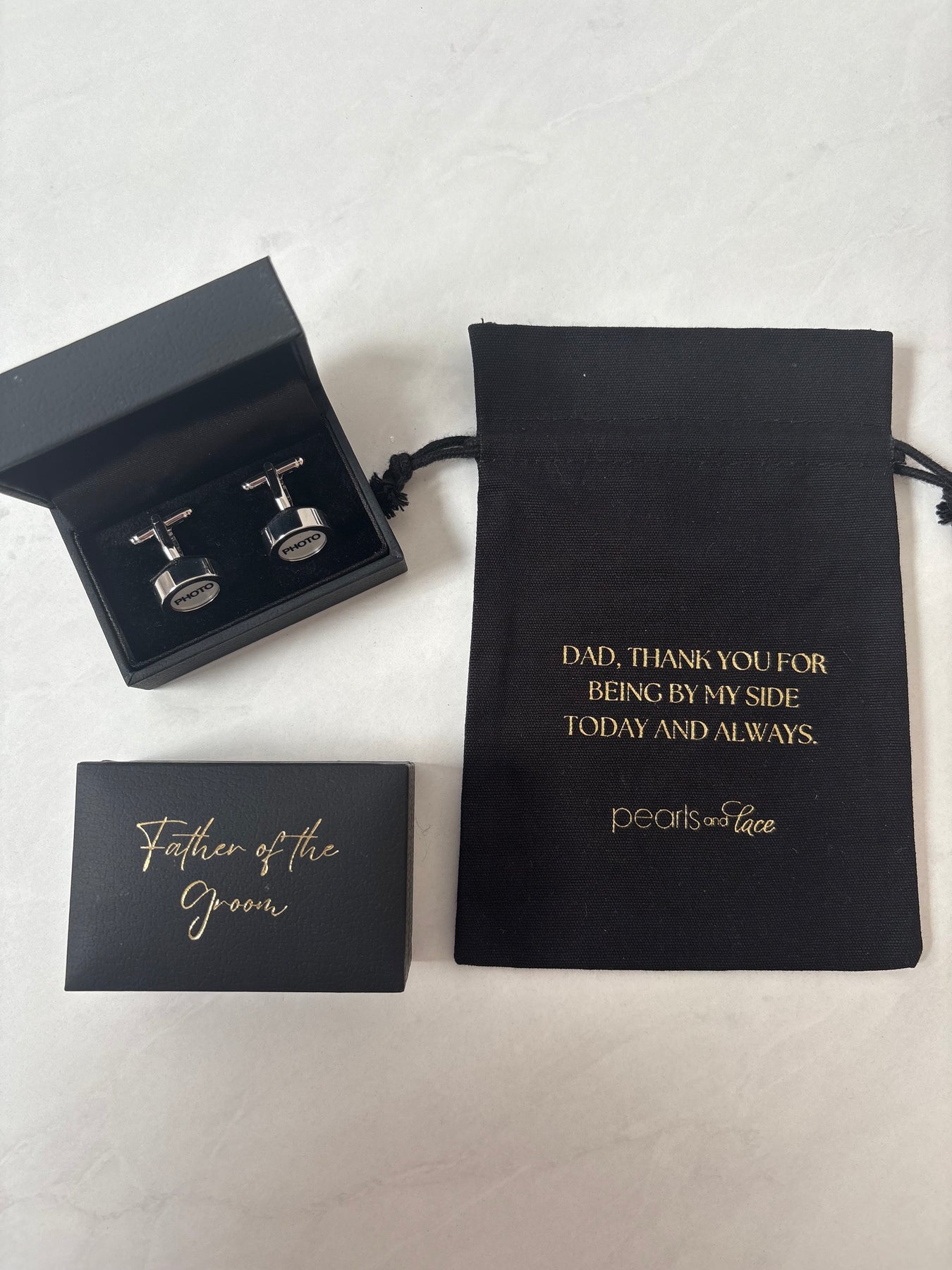 A lovely idea to remember a special loved one on your wedding day. You can insert a photo into these cufflinks. Available in different gift packaging for the entire bridal party.